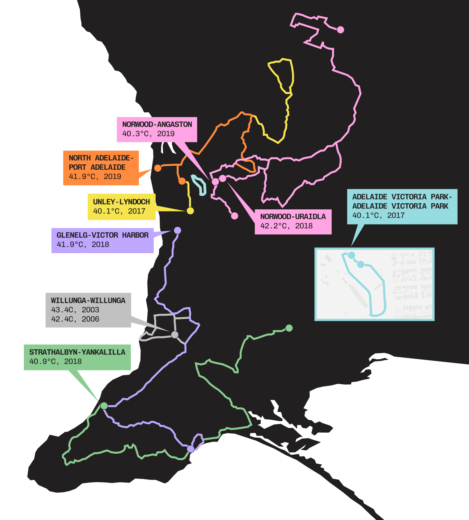 Over the past century, Adelaide has seen a clear increase in the number of extreme heat days (40C and above)