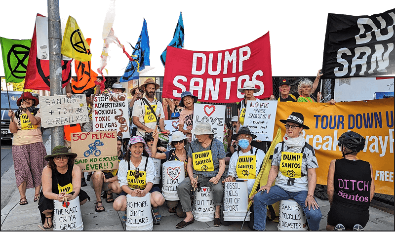 The Australian Greens, Australian Conservation Foundation, Extinction Rebellion, and Fossil Free SA have all challenged Santos’s TDU sponsorship, with petitions and protests calling for the event to drop fossil fuel backing. In 2024, 8000+ South Australians signed a petition tabled in Parliament by politician Tammy Franks.